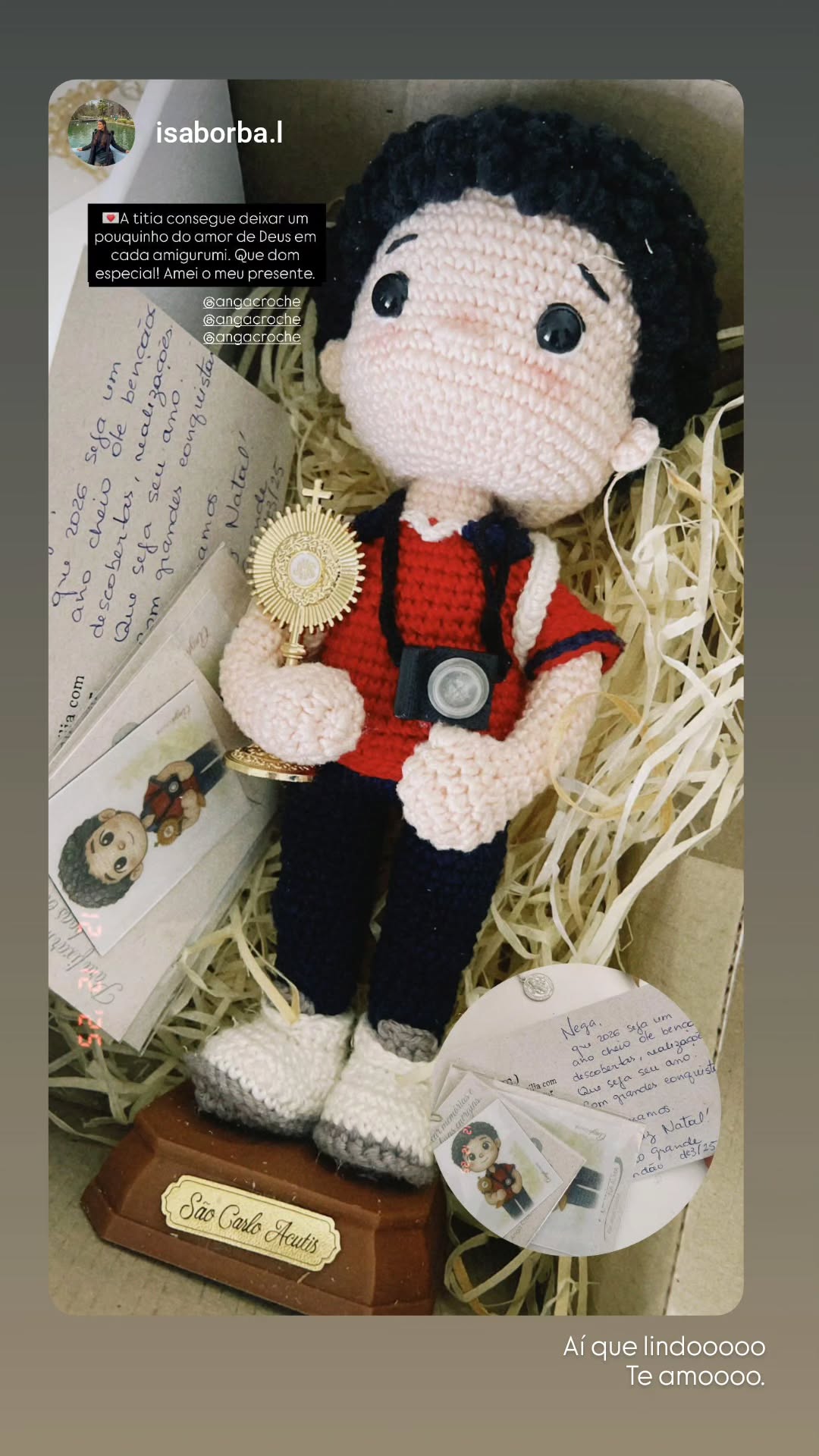 Comprei o boneco em crochê do Carlo Acutis na Casa da Promessa e fiquei simplesmente encantada 🤍