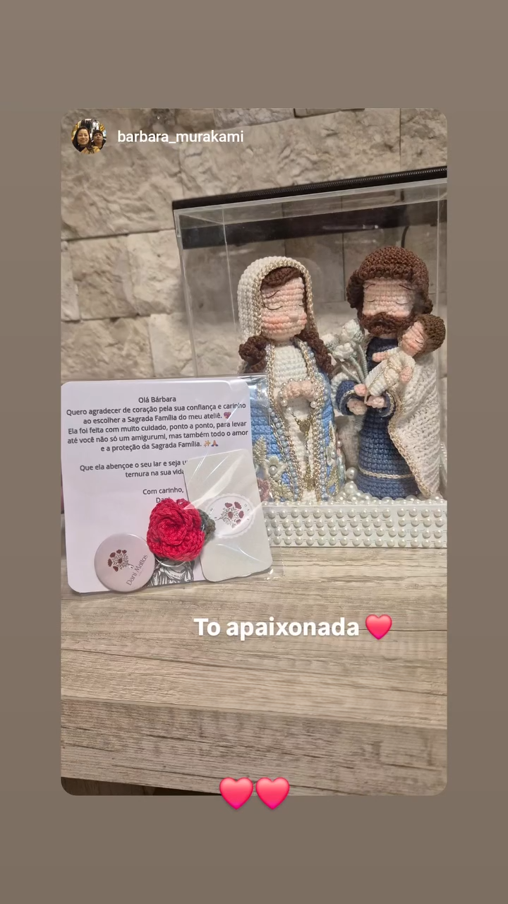 Comprei a Sagrada Família em crochê na Casa da Promessa e foi uma das compras mais especiais que já fiz 🤍